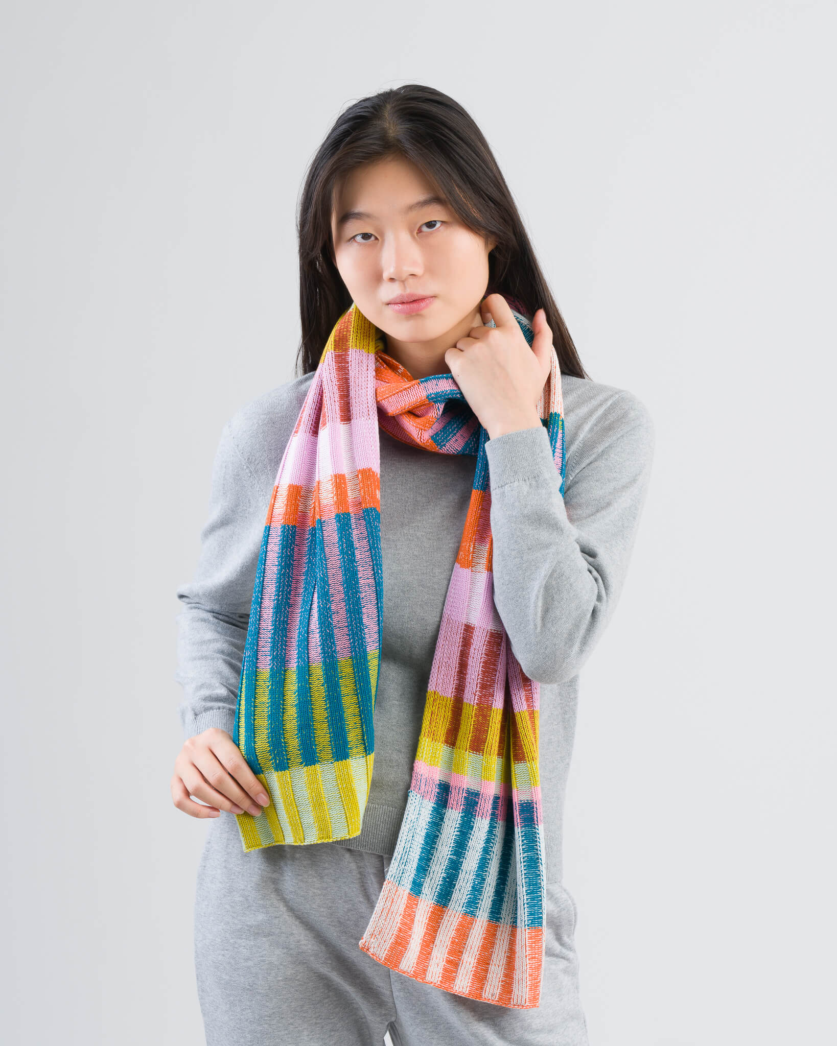 Mosaic Stripe Knit Scarf