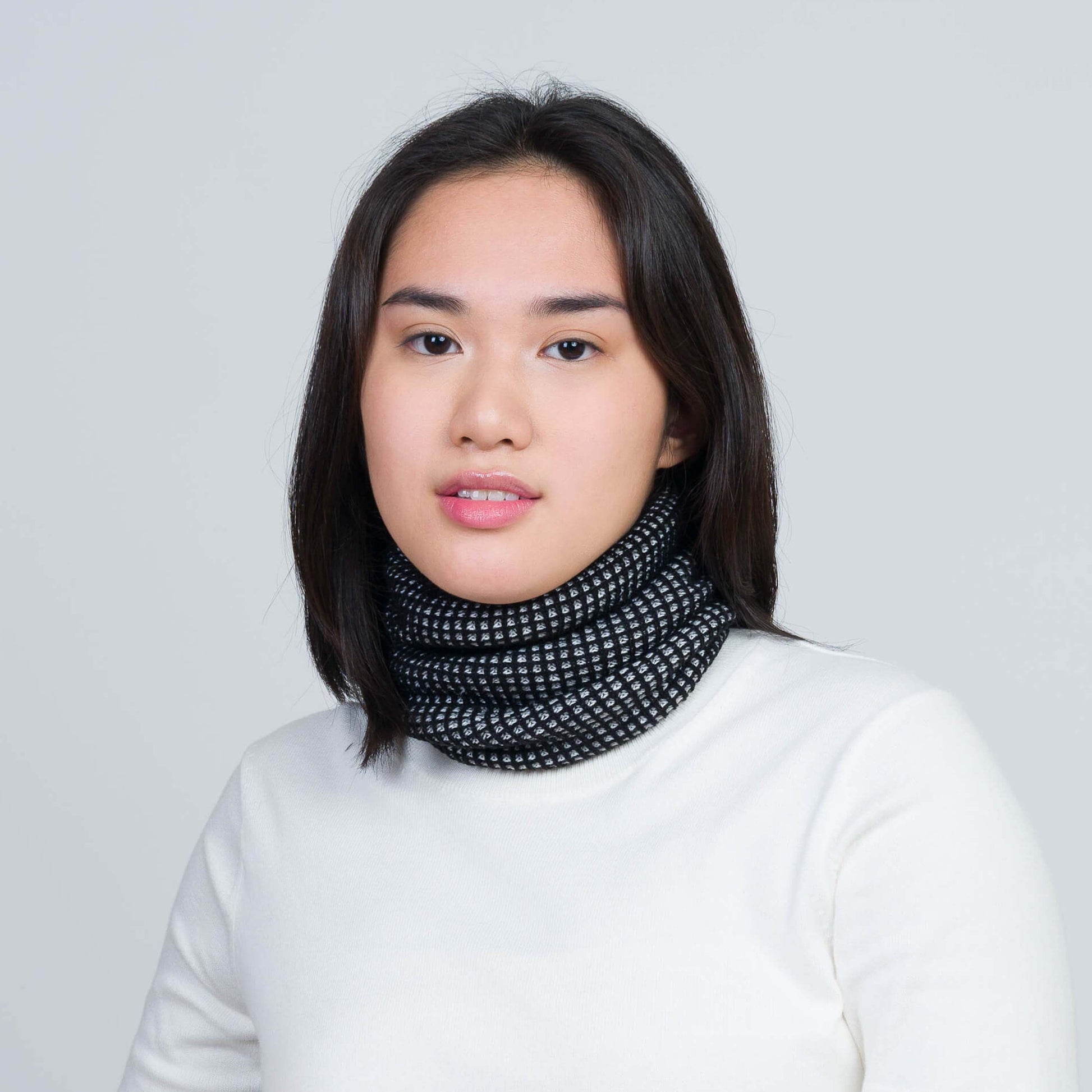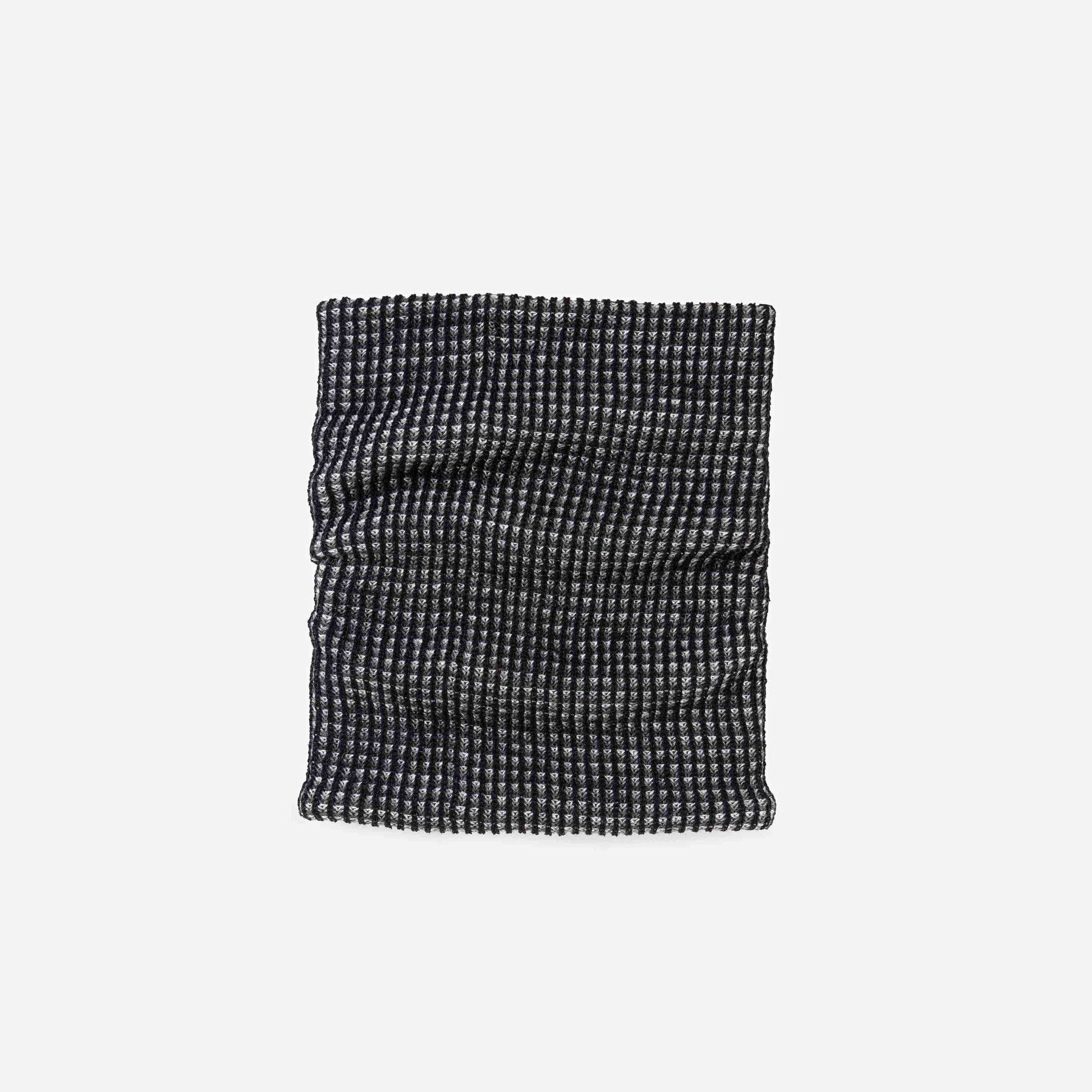 Colorful ribbed knit snood with a graphic grid pattern. Soft and stretchy, made from lightweight hypoallergenic yarn. Versatile and convertible — can be worn cuffed like a turtleneck or extended as a cozy neck warmer. Designed to match our bestselling . Mix or match! Unisex/one size.